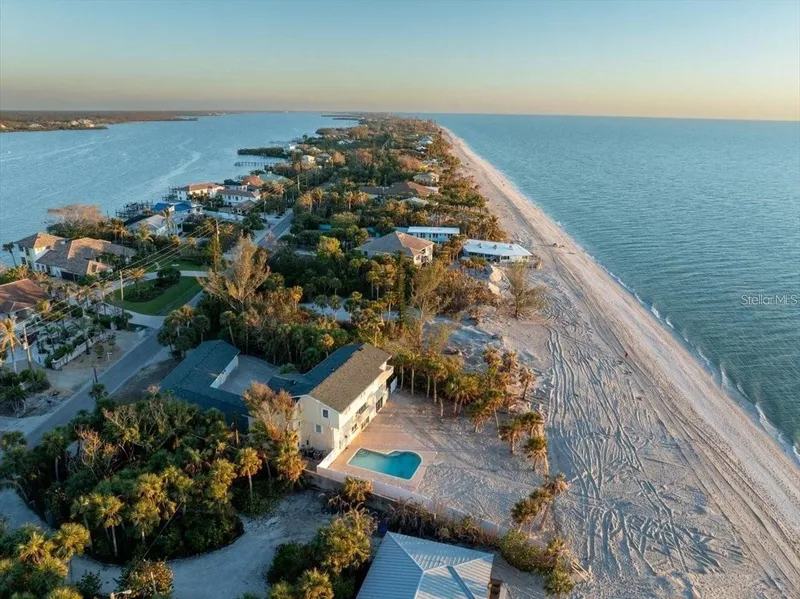 This rare offering includes deeded beach-to-bay access with a private boat slip directly across the street, providing seamless navigation from the Gulf to Lemon Bay—an exceptional feature for boating enthusiasts. The property delivers the perfect balance of peaceful beachfront living with convenient access to world-class dining, shopping, and cultural attractions.