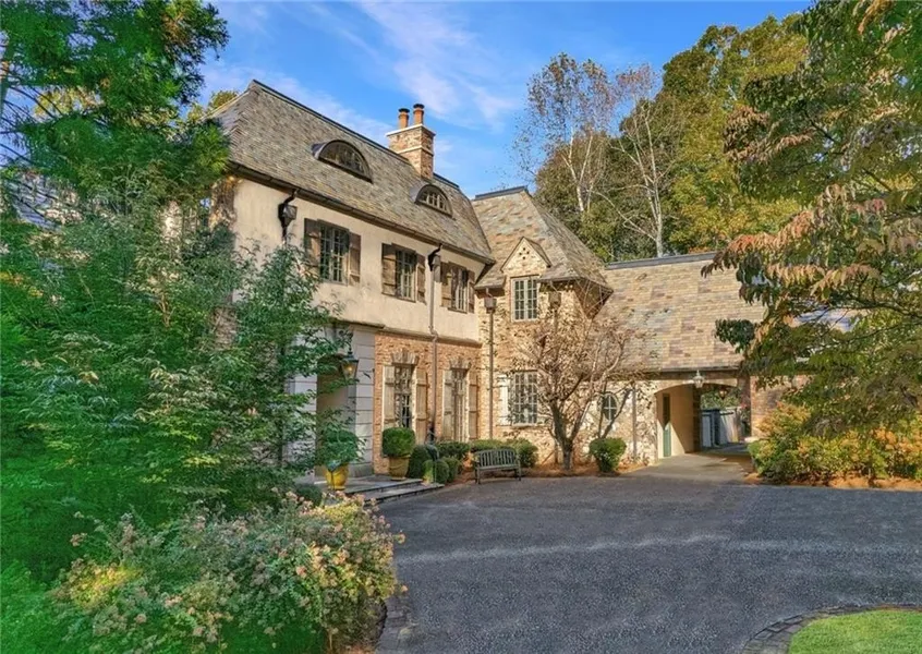 The grand exterior showcases exceptional craftsmanship, featuring a timeless blend of stone, brick, and hard-coat stucco, crowned with a slate roof, and copper gutters. Enter through the stately mahogany doors to a foyer graced by Italian limestone floors, grand 13’ ceiling heights setting an elegant tone. The limestone tile and rich heart pine floors carried throughout the main floor provide warmth & refinement, while floor-to-ceiling custom windows bathe each room in natural light. To further enhance the ambiance of this elegant estate, a Lutron lighting system is used fo...