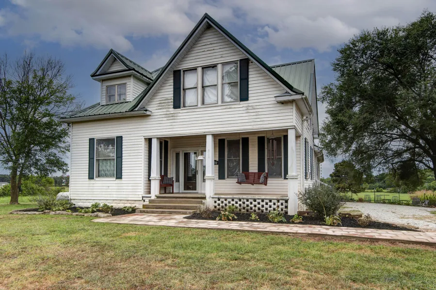 This spacious farmhouse beautifully combines original character with thoughtful updates. Step inside to admire ornate details like the handcrafted staircase, intricate trim, and solid wood doors--paired with modern touches, including a remodeled kitchen featuring butcher block countertops, updated appliances, and stylish fixtures. The home's historic chimneys have been upgraded with stainless steel liners, now serving a cozy new wood fireplace and two efficient pellet stoves--perfect for winter nights. Additional updates include a newer electrical service and panel, PEX plumbing, a new well pump, water softener, and whole-house filtration system, and water heater offering peace of mind and convenience. Set on 20 picturesque acres, this property is ideal for creating a venue, homesteading, or simply enjoying the rural lifestyle. Outside, you'll find endless charm: a classic silo and barn, a brand-new 40x50 pole barn, fruit trees, berry bushes, garden plots, and a chicken coop with run. The white picket fence out front completes the timeless appeal, while the surrounding open pasture provides room to grow and explore.