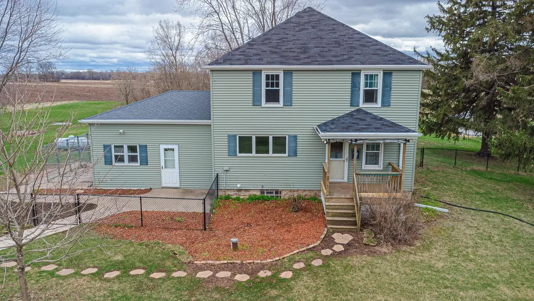 Escape to country living in this charming 4-BR, 1.5-BA home on 40 acres! This 2 story, farmhouse offers original hardwood floors, dream kitchen w island, new appliances, updated electrical/HVAC & a new instant hot water heater! Main floor offers 1st floor laundry, mud/flex room as well as a den/craft/5th BR space. Enjoy fenced in yard, outdoor dog kennels, 8x8 chicken coop (8x16 run w heater) & 5 nesting boxes, 3 raised garden beds and firepit. Ripe for the harvest w 2 peach trees, blackberry, raspberry and black raspberry bushes plus River Grapes that taste like Concords! Outdoor living includes a serene pond, 1st grade tillable acreage, and woods for exploring or hunting. 4 deer stands included New Mound in 2023. This is the perfect blend of comfort, self-sufficiency, and space to roam!