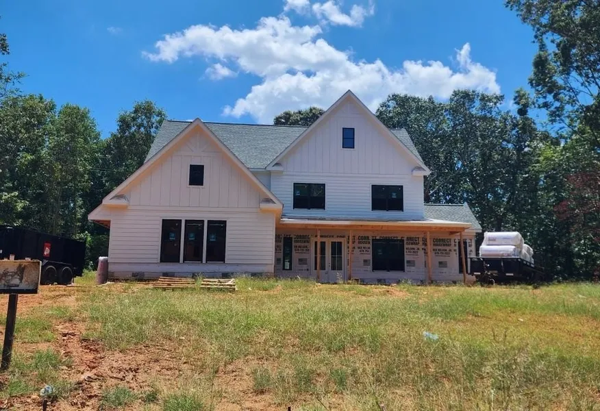 New custom-built farmhouse in a new community with large estate-sized lots ranging from 1.5 to over 4 acres in west Jackson County! This open concept master-on-the-main floorplan has a spacious open vaulted kitchen w/large work island, plenty of painted cabinetry, Quartz countertops, an island waterfall, large walk-in pantry with wood shelving, double ovens, and gas cooktop that flows into the family room with fireplace, sliding paneled glass door, and vaulted ceilings. Separate dining/breakfast area. Split-bedroom plan with a large master suite on main. Master bath with separate his and her vanities, HUGE tiled shower with dual showerheads, free-standing tub, plus an oversized walk-in closet with built-in shelving. Additional guest suite and private full bath on main level. Laundry room on main with cabinets above the washer/dryer and separate cabinet base sink. The split stairway with hardwood treads leads upstairs to three spacious secondary bedrooms featuring one private bath and another J-n-J bath with dual vanities, plus a separate loft or media room. Mud room off the 3-car side-entry garage. Vaulted covered rear porch with fireplace views the wooded private 3.26-acre lot. 10' ceilings on the main with 8' tall doors, wide stairway with hardwood treads, hardwood floors on the main level except bedrooms and wet areas, full front porch... don't miss this one!