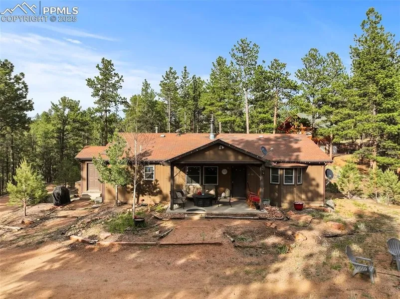 Tucked away on 2.48 acres at the top of a hill in the peaceful Florissant Heights area, this ranch-style home offers the perfect blend of privacy, mountain charm, and modern convenience—with no HOA restrictions. Surrounded by mature trees and beautiful mountain views, the property is fully set up as a short-term rental, offering an ideal opportunity to generate income or enjoy as a personal mountain getaway. Inside, the cozy living room features a wood-burning fireplace, perfect for chilly evenings. The kitchen includes natural wood cabinets, solid-surface countertops, and all appliances. A separate dining area with French doors transitions seamlessly from casual meals to entertaining. Two well-sized bedrooms and two full bathrooms, including an en-suite in the primary bedroom, provide comfort and functionality. A dedicated mudroom and laundry area with electric hookups keeps things runn...