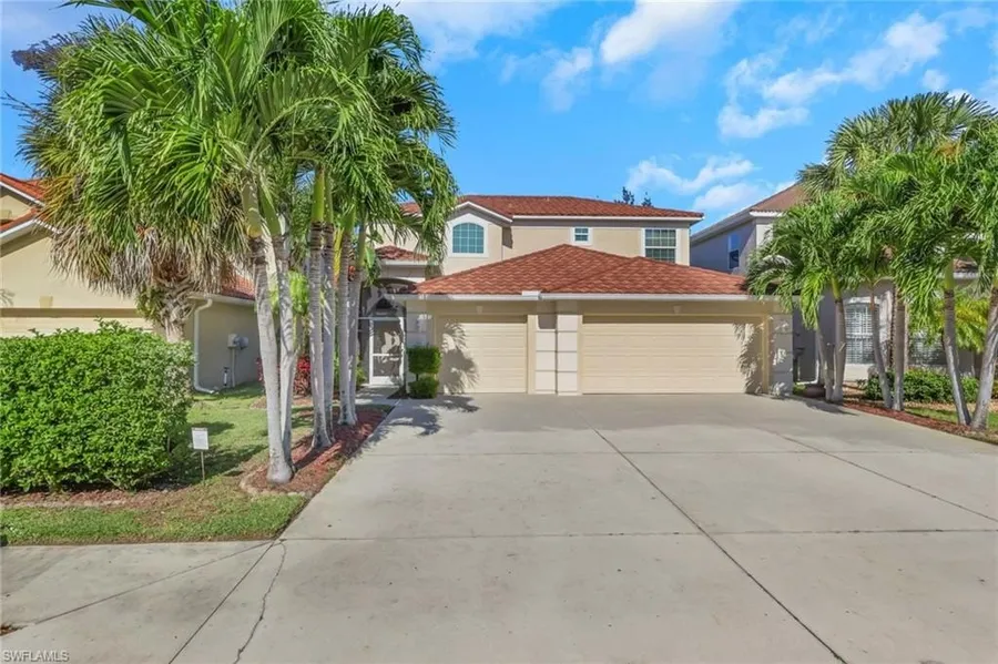 Beautiful Two-Story Home in Stoneybrook at Gateway! Welcome to this stunning 3–4 bedroom, 2.5 bath home with a spacious three-car garage, located in the highly sought-after gated and guarded community of Stoneybrook at Gateway. This meticulously maintained home features a brand-new roof, new stainless steel appliances, and upgraded hurricane-impact windows for enhanced safety, efficiency, and peace of mind. Enjoy a large screened back lanai perfect for relaxing or entertaining, complete with a 6-person Jacuzzi hot tub, outdoor furniture, and a tranquil waterfall wall. A charming front entrance lanai adds even more curb appeal. Inside, you’ll find an open eat-in kitchen with elegant hardwood cabinetry and all new appliances, a formal dining room, and an inviting front living area. The family room showcases a striking stone fireplace wall, creating a warm and stylish focal point. The primary suite, conveniently located on the main floor, features sculpted walls, two elegant chandeliers, and a spacious en suite bath. Upstairs, you’ll discover a large loft/den/office/flex space with modern built-in shelving—perfect for a home office, playroom, or entertainment area. Two additional guest bedrooms each feature walk-in closets, and the upstairs bath has been recently updated with new tile flooring. Additional highlights include a new roof, hurricane-impact windows, a brand-new A/C system with transferable warranty, and numerous modern updates throughout. This home offers comfort, safety, style, and plenty of space for modern living—a true must-see!