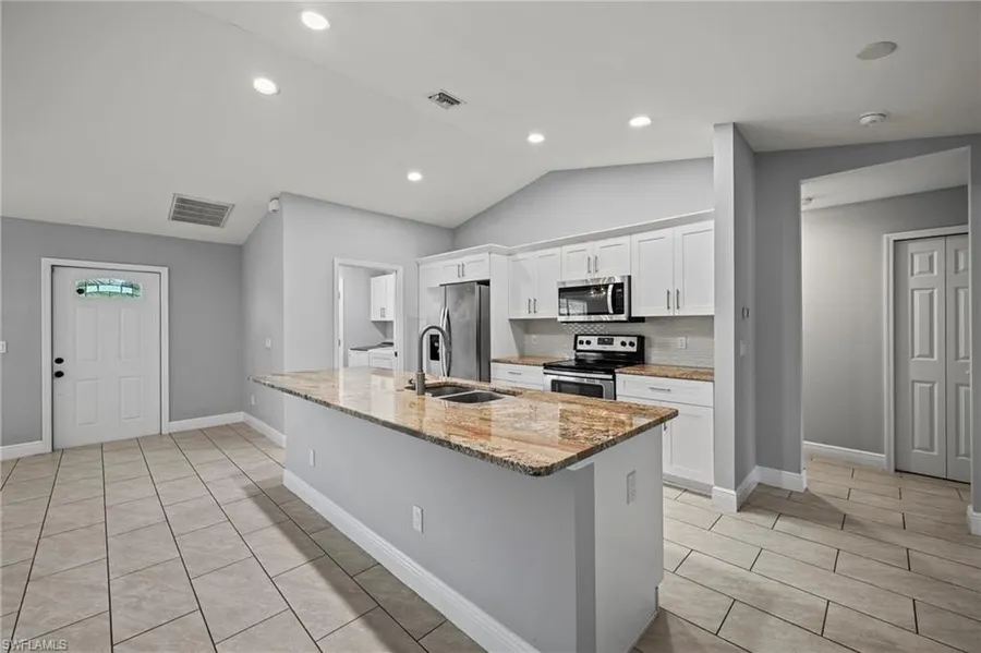 4 Bedroom concrete block construction home built in 2018 offering an updated kitchen with stainless steel appliances granite countertops and plank tile flooring throughout main living area and master bedroom with carpet in the 3 guest bedrooms. Brand new interior paint completed on all baseboards, trim, doors and walls! Stunning master bathroom complete with duel sinks and designer tile finish in the large step in shower. Brand new water heater installed in October 2025 and Water softener system in late 2024. Out back enjoy a spacious screened in lanai and a large private back yard! NO HOMEOWNER'S ASSOCIATION FEES. This home is located within one of the most prime and desirable locations in all of Southwest Florida! 1-2 miles away from the popular Three Oaks Park, Three Oaks Middle School, San Carlos Park and Three Oaks Elementary Schools. Short Drives to RSW International Airport, Gulf ...