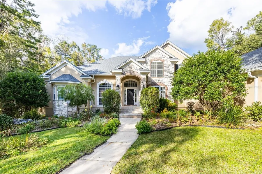 HUGE PRICE IMPROVEMENT!! This one of a kind 4,419 sq ft home on 1 acre, in the secluded, gated community of Hampton Ridge offers luxurious features and a meticulously maintained design. Built for both comfort and style, the property includes 4 bedrooms, 4 bathrooms, a study, formal living and dining areas, a loft, and a flex room. The grand foyer welcomes you with high ceilings and tray designs, leading to stunning views of the pool and spa. The owner's suite is a private retreat with wood floors, plantation shutters, and a beautifully renovated marble bathroom featuring a glass shower, free-standing modern tub, and modern fixtures. Every bathroom in the home has been remodeled with modern finishes and fixtures. The spacious kitchen boasts an island, white cabinetry, granite countertops, stainless steel appliances, Wolfe Cooktop, a built-in oven, oversized pantry, and both a wet bar and dry bar, ideal for entertaining. The soaring ceilings in the great room add to the grandeur, while large sliding glass doors open to the pool area, perfect for indoor-outdoor living. Additional features include ample storage with plenty of walk in closets, a laundry chute from the upstairs suite, and significant updates such as a new roof (2022), a water softener system throughout (2022), resurfaced pool (2017), summer kitchen remodel (2019), a new water heater (2021), and updated AC units within the past 5-7 years. The home is situated near Tioga Town Center, Jonesville, and Haile shopping, offering convenience to nearby amenities.