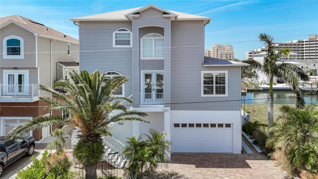 This stunning three-story waterfront home is a rare find, perfectly situated on a deep-water canal just 3/10 of a mile from the Gulf. Offering breathtaking scenic views from two sides, you’ll love unwinding on the second- and third-floor balconies, soaking in the coastal beauty.