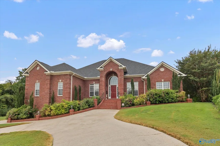 Rare opportunity to own a spacious, all-brick executive home situated on nearly an acre of land, with unbeatable mountain views! Its prime location ensures a short commute to RSA, Research Park, and Downtown Huntsville. Natural light fills this elegant residence. Featuring 5 bedrooms and 4 full baths, providing flexible living space, including a full ensuite with private entrance, perfect as a dedicated MIL suite or guest area. Luxury details like vaulted ceilings, marble countertops, and gleaming real hardwood floors elevate the space, maintaining a warm and welcoming feel. Amenities include large & open media room/studio, a 3-car garage, and a custom, fully heated and cooled sunroom (compl