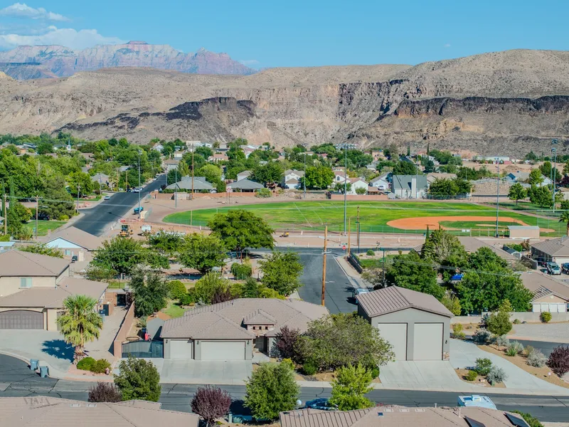 Welcome to your serene retreat with stunning views of Zion National Park! This beautiful three-bedroom, two-bath home is situated in a quiet cul-de-sac neighborhood, offering both privacy and tranquility. The home features a spacious three-car attached garage and an impressive 28x39 two-car RV garage, both equipped with mini-split air conditioning and heating systems for year-round comfort. RV garage also has 50 amp electricity and full hookups inside and outside. Enjoy easy access to nearby parks, top-rated schools, and outdoor activities like hiking and biking. Perfect for families and outdoor enthusiasts. Don't miss the opportunity to own this exceptional home! (Subdivision is known as ''PARK AMD & EXT'' and county records on acreage is incorrect)