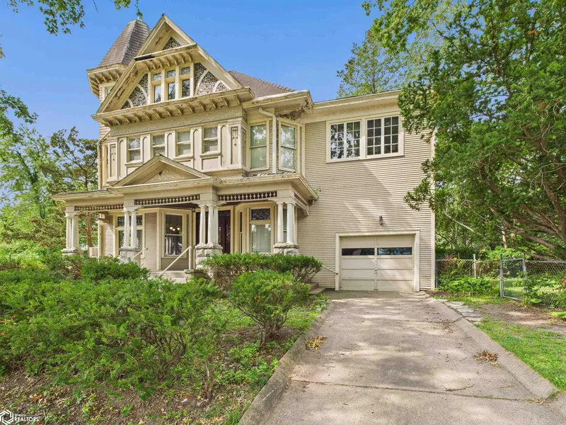 Own a Piece of Keokuk History Immaculate 1902 Architectural Masterpiece. Step back in time while enjoying modern comfort in this extraordinary 3-story home, rich with history and timeless craftsmanship. Built in 1902 by John Leisy and designed by George F. Barberone of Americas most celebrated late 19th-century domestic architectsthis residence offers 3,623 sq. ft. of stunning, move-in ready living space. Inside, youll find 5 bedrooms, 2 full baths, 3 half baths. The thoughtful layout includes two bedrooms connected by a Jack & Jill full bath, one bedroom with a private half bath, and another with an attached full bath that shares access with the fifth bedroom. The immaculate interior features original woodwork, hardwood floors, built-ins, fireplace structure, and beautiful stained-glass windowsall preserved in exceptional condition. Modern updates blend seamlessly with the historic charm, including updated electrical, a newer electric water heater, hot water boiler heat throughout, window air conditioning on the main level, and central air on the second level. Situated on a fully fenced .72-acre lot, the property also features a charming backyard cottage (currently used for storage) and unique original exterior fretworkcrafted in 1902 from colorful broken beer bottle glassmaking this home truly one of a kind. A rare opportunity to own an iconic piece of Keokuks past, this home is ready for the next chapter in its remarkable story! Be sure to watch the video tour!