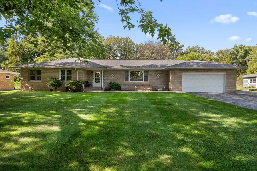 This spacious and well-built Ranch home features three large bedrooms, a full bath, and a 3/4 bath. The oversized living room provides plenty of space for entertaining and versatile furniture arrangements. The eat-in kitchen boasts solid wood cabinets, retro countertops, a built-in oven, a gas cooktop, a new dishwasher and updated laminate flooring. A large bonus/flex room offers the potential for a formal dining area, additional bedroom, or office space. The garage includes ample storage, both inside and above in the attic. The backyard features a treated deck, an above-ground pool, and a storage shed, all situated on just over an acre right in town. Don't miss out on this rare Ranch home!