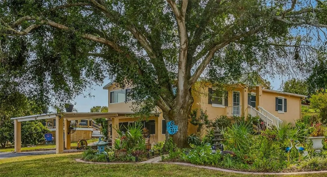 Tucked away on a quiet dead-end street in Lady Lake, this spacious 3-bedroom, 3.5-bath home is loaded with features you won’t find anywhere else. Inside, you’ll find multiple living spaces designed for both comfort and creativity: a large office/bonus room, oversized media room, guest suite, safe room, and a massive laundry/utility area. Upstairs, the heart of the home opens wide—an updated kitchen with granite counters, stainless appliances, island bar, and modern lighting flows seamlessly into the dining and family room, where walls of windows frame breathtaking views of Lake Griffin. The master suite offers built-in bench seating, a walk-in closet, and a spa-inspired bath with dual sinks, solar tube, and a glass shower. Step outside and discover everything this fully fenced 2-acre parcel has to offer: a detached workshop/garage, newer saltwater pool with new sand filter and new composite deck, RV hookup, fenced pasture with barn, chicken coop, plus fruit-bearing avocado and peach trees. Thoughtful upgrades include 30 solar panels for lower electric bills, crown molding, 6 camera CC TV System with phone monitoring, 2024 water heater with WIFI, wood plank tile, accent ceiling lighting, wainscoting panels, an oversized paved driveway with shaded carport, and a whole house water filter. No HOA. Endless potential. The perfect blend of privacy, self-sufficiency, and lakeside living.