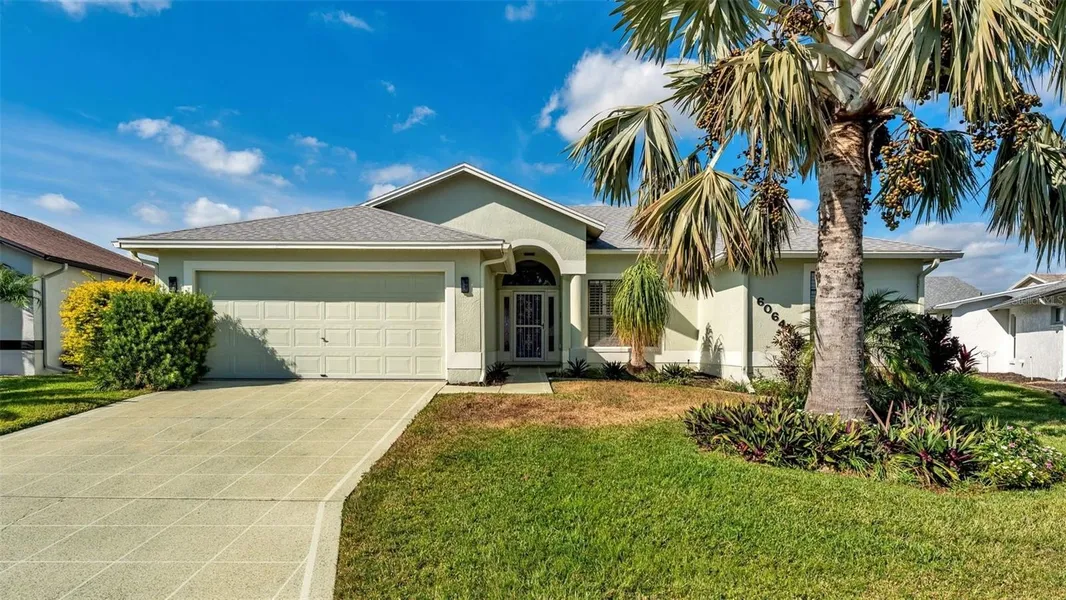 One or more photo(s) has been virtually staged. **This beautifully updated 3-bedroom, 2-bath home in the 55+ Sandpiper Golf & Country Club community features a newly updated kitchen and bathrooms, fresh interior paint, and tile flooring throughout. Enjoy the comfort of a master suite with dual walk-in closets and a spacious Florida room. Recent upgrades include a new AC (2022), updated bathrooms (2023), and garage enhancements. The low monthly HOA fee covers a wealth of amenities, including golf, pools, and security. This move-in-ready home offers a vibrant, active lifestyle in a welcoming community. Some Photos have been virtually staged