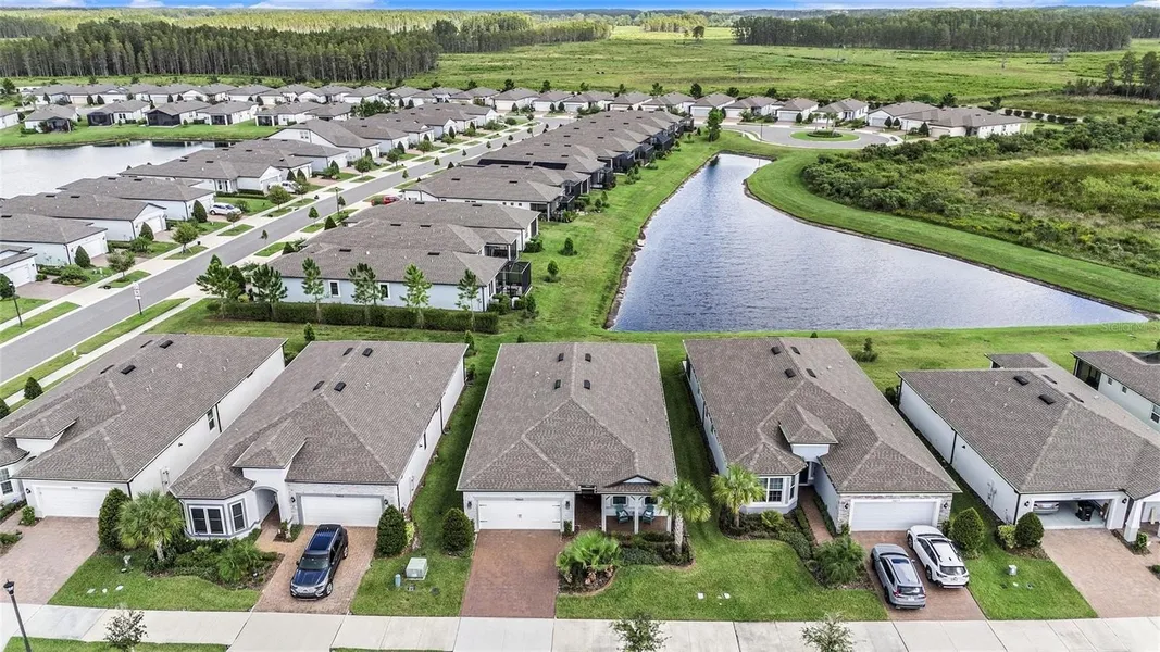 Stunning waterfront home in the premier Del Webb Bexley 55+ community! Offering a spacious open floorplan with custom neutral paint, luxury tile flooring, and high-end fixtures throughout, this is the home you have been waiting for and more. The modern kitchen is a chef’s dream, boasting upgraded appliances, 42" cabinetry with pull-out shelving, under-cabinet lighting, and an extended island with breakfast bar seating. Entertain with ease in the open-concept living and dining areas, which flow seamlessly out to a large, screened lanai—perfect for indoor/outdoor gatherings. An additional flex room with French doors provides a versatile space that can suit any of your household’s needs. Retreat to the spacious primary bedroom, complete with a luxurious en-suite bathroom featuring dual sinks and a large walk-in shower—your private oasis for starting and ending each day in serenity. Ideally located less than a mile from the expansive Del Webb amenity center, you’ll have access to multiple pools, a 19,000 sq. ft. clubhouse with fitness center and café, pickleball and tennis courts, a dog park, and countless social clubs. With close proximity to shopping, dining, medical facilities, and major highways, this home truly has it all. Don’t miss your chance—schedule your showing today!
