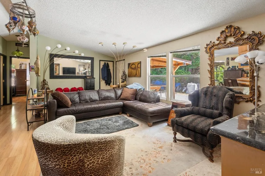 Wonderful investment opportunity in the heart of the redwoods! This charming home on 9 acres sits just minutes from the world famous Chandelier Drive Thru Tree and Eel River, making it an ideal location for a vacation rental or private retreat. Set on a peaceful wooded lot with mountain and forest views, this home features an open-concept layout with a well-equipped kitchen. The property features excellent drinking water with carbon and UV filtration. An attached workshop/extra room adds additional space for guests or storage. Plenty of well-maintained garden and orchard areas for your green thumb! The additional outbuildings and workshop space also enhance the value of this property. This property offers flexibility for short-term rental potential, nature-based retreats or full-time home. Great opportunity for those seeking a serene and peaceful location.