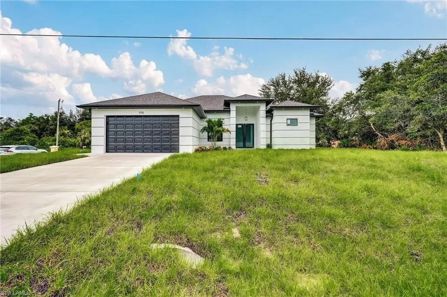 Discover this beautifully designed new construction home offering 1,600sq. ft. of living space in Lehigh Acres. Thoughtfully crafted for modern lifestyles, this property combines elegance, comfort, and functionality. Features Include: 3 spacious bedrooms and 2 full bathrooms. A versatile den, ideal for a home office, media room, or guest space. Sleek tile flooring throughout, ensuring durability and style. Soaring high ceilings that create an open and airy ambiance. Premium impact-resistant windows, offering safety, energy efficiency, and added value. Situated in a highly sought-after area of Lehigh, this home provides convenient access to schools, shopping centers, dining options, and recreational amenities. This is more than a home; it’s a lifestyle upgrade. Don’t miss the opportunity to make it yours. Schedule your private