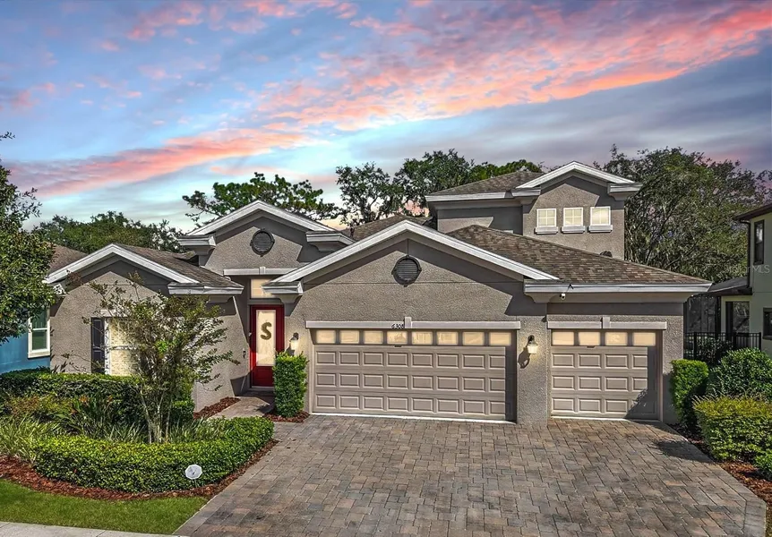 Practicality meets style with a pavered driveway leading to the 3-car garage, providing ample storage and parking.