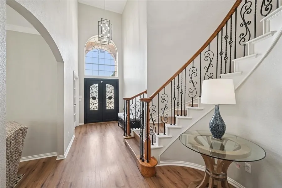 Fully updated in 2022, the home welcomes you with elegant iron double doors that open to a grand staircase accented by wrought-iron spindles. The thoughtful floorplan features the primary suite and an additional bedroom downstairs, while upstairs you’ll find a spacious game room and three generous secondary bedrooms.