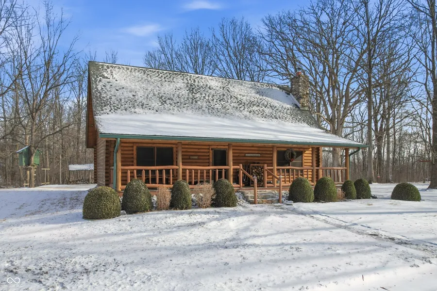 Set on over 5 acres, this one-of-a-kind property offers a rare opportunity to enjoy peaceful country living with striking architectural character. The living room is a true showpiece, featuring a soaring vaulted, beamed wood ceiling, a dramatic log wall, a wood-burning fireplace with insert, and a custom TV stand-creating a warm and inviting space filled with natural light. The kitchen blends rustic charm with modern function, offering stone countertops and a peninsula ideal for casual dining and gatherings. With 1,708 square feet across a 1.5-story layout, the home includes three bedrooms and two full bathrooms, with bedrooms serving as quiet, comfortable retreats. Additional highlights include an oversized detached two-car garage with ample space for storage or a workshop, hard-wired smoke detectors, a whole-house surge protector, recently pumped septic system, and a chimney that has ...