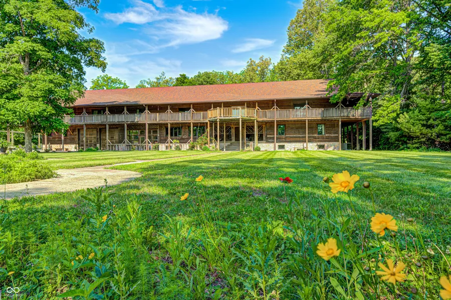 Don't miss this RARE opportunity to own your DREAM PROPERTY!! Sitting on very secluded 20 picturesque, wooded acres, this "retreat like" log home boasts over 10,000 SF, 9 bdrms, & 6 baths. The unique layout of 2 complete homes, on both the main and upper levels, offers endless options such as a "mother-in-law" suite, multi-generational living, retreat center, & so much more! Step into the main level w/ a cozy & warm log cabin feel, stone FP, HW floors, Primary bdrm, 2 addtl bdrms, 3 baths, laundry rm, & bonus room (could be office or sitting room). As you enter the upstairs, the soaring 11 ft ceilings are magnificent! The 2nd Primary Suite offers 2 WIC, a gorgeous en suite bath w/ Ceramic tiled shower and full soaking tub. Walk into the massive open concept space inc Great Room, Dining Rm & Modern Kitchen. Gourmet Kitchen boasts a large center island w/ brkfst bar, open shelving, quartz counters, & the most amazing walk in pantry (11x11)! Nature lovers will be in heaven with 20 acres of woods, gravel walking trails, Sugar Creek running through, stocked pond (w/ sep well), inground pool w/ auto cover, hot tub, 6,000 SF Barn w/ horse stall (electric/water), covered 23x23 Pergola w/ stamped concrete, chicken & duck coops, 24x24 custom covered playset & multiple other outbuildings. Heated attached garage offers 2- 12 ft doors, workshop, & a full attached Hair Salon Studio w/ separate entrance! 2nd Level wrap around covered porch extends around the entire home for many days/nights of peace and tranquility! Full semi-finished, waterproofed basement offers 2 workout rooms, cellar, plus 6 large storage rooms for unlimited possibilities! The entire home has been updated, please see supplements for complete list. This truly is a ONE OF A KIND property!