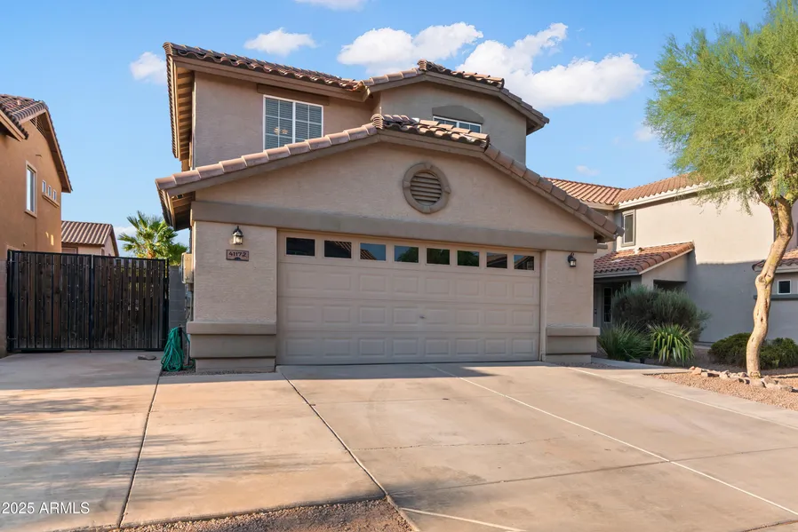 Look no further! This updated 5 bed, 3 bath home in Maricopa features desert landscaping, 2-car garage, RV gate, and a loft. One bedroom and full bath are conveniently downstairs. The completely remodeled modern kitchen offers sleek cabinetry, ample counter space, pantry, stainless steel appliances, recessed lighting, and an island with breakfast bar. The spacious primary suite boasts a dual-sink vanity, soaking tub, shower, and walk-in closet. The expansive backyard includes a covered patio and refreshing pool—perfect for summer!