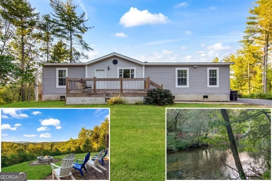 Welcome to 326 Ponderosa Rd, a private unrestricted FURNISHED AND TURN KEY profitable current AIRBNB on a 9.38-acre retreat on two parcels with over 670 FEET OF CREEK FRONTAGE ON Mountaintown Creek and a LONG RANGE MOUNTAIN VIEW, a stocked trout stream with a large creekside area and seating to enjoy the water. This 3 bed, 2 bath home sits on a permanent foundation with a retired title and offers sheetrock walls, tongue-and-groove ceilings in the living room, an electric fireplace, and a spacious kitchen with island, stainless steel appliances, pantry, and laminate countertops. The master suite features mountain views, walk-in closet, soaking tub, tile shower, dual sinks, and custom cabinets, while two guest bedrooms, an office space, and a dedicated laundry room provide flexibility. Outdoor living includes a covered front porch with mountain views, a back porch overlooking the flat yard...