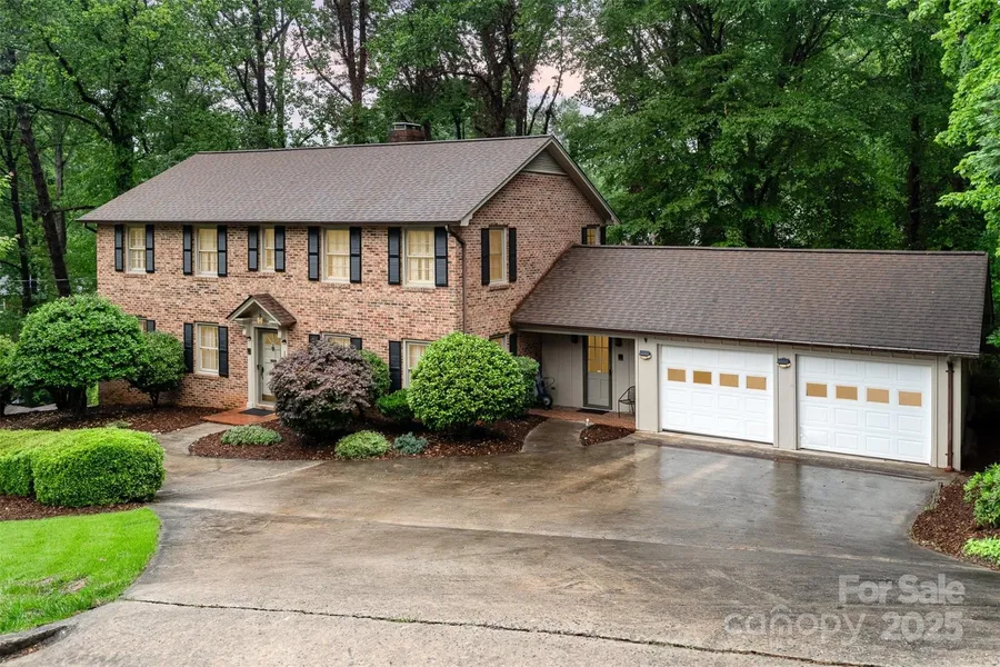 This large 4 bedroom, 3.5 bath brick 2 story home on a basement boasts an extra lot which allows ample room to spread out both indoors & out. It offers loads of potential with a little TLC! The main floor contains a kitchen, dining room, formal dining room, cozy den with fireplace, formal living room, laundry, 1/2 bath and double garage. Upstairs is a primary bed, primary bath, guest bath & guest bedrooms. Downstairs is a flex/game room area, wet bar, office, full bath and utility room. Situated in a quiet and serene neighborhood within walking distance to downtown for dining, festivals, parades and more. Minutes from Lake James or Pisgah National Forest.