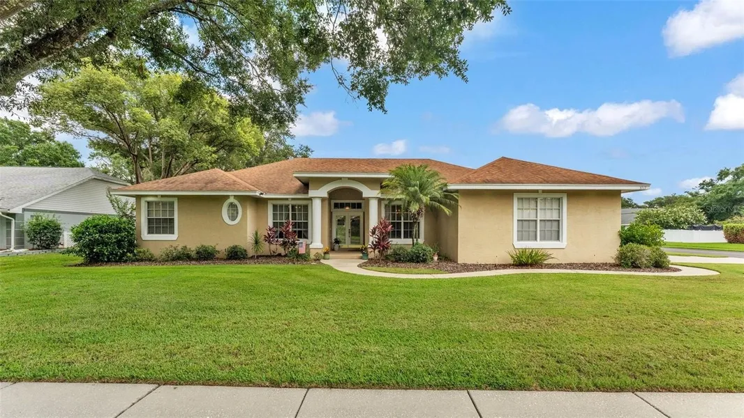 Welcome to 3717 Tigereye Court. Built by Central Florida’s premier custom homebuilder, Ernie White, this stunning residence is located in the coveted Leigh Lakes subdivision of Imperial Lakes. Situated on an oversized 0.31-acre corner lot, this home masterfully blends elegant design, thoughtful updates, and a versatile floor plan perfect for both entertaining and everyday living. Step inside to soaring 10-foot ceilings, detailed crown molding, and an open / inviting atmosphere. This home offers three spacious bedrooms, two bathrooms, a large front living area that sets the tone for refined comfort. The private office provides a quiet space for work or relaxation and the separate formal dining room features a beautiful crafted tray ceiling. The primary suite is generously sized with private lanai access. Recent updates include a new roof (2017), new A/C system (2019), luxury vinyl plank f...