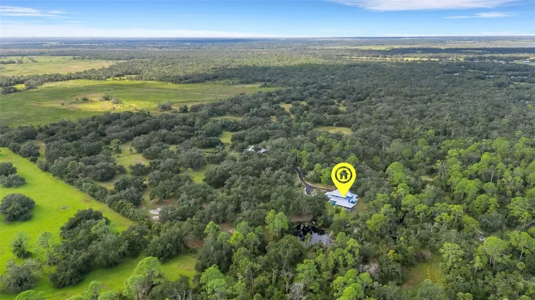 Experience peaceful country living on this rare 90-acre ranch in the heart of Myakka City. As you enter, a newly paved, winding canopy driveway welcomes you through mature oaks and pastureland, setting the tone for the private retreat that awaits. The west property line spans approximately 2,500 feet along protected state park land, ensuring long-term privacy with no future neighboring development and uninterrupted natural views. Designed for those who value space, seclusion, and a true rural lifestyle, the land offers existing ATV trails, open pasture, shaded paddocks, and multiple areas ideal for expansion or additional amenities.