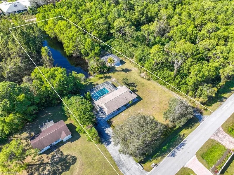 PRICE IMPROVEMENT! Situated on a 2.39 acre lot, this charming open floor plan ranch-style home is a must see! LOCATED WEST OF 75 and only 5 miles from 5th Avenue/downtown Naples. This wonderful single family home features 3 bedrooms/2 baths, a HUGE family room/kitchen/dining room, and a stunning west-facing view from the oversized screened lanai complete with an in-ground pool. HVAC is only 2 years old and the roof is 7 years old. As an added bonus, there is also a separate garage/structure on the property that can be converted to storage or a private sanctuary. The opportunities are endless. Have a boat or RV and looking for a place to store it? We've got you covered. Don't miss your opportunity to get your creative juices flowing and call this place "Home"!!!