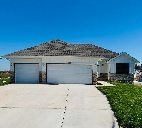 NEW Construction & Subdivision, BASEMENT! South of Nixa. Minutes to Hwy 160 & 65!! Estimated Completion date is the end of Oct! Approx 3216 sq ft. Large living area with open living room/kitchen. 5 BR, split BR plan, 3 bath, 3 car garage. Quartz Sienna Gold countertops throughout. Large master bath walk in closet and dual master vanity. Cabinets are beautifully painted aesthetic white. Black hardware and fixtures. LVT flooring throughout the entire home! Buyer due diligence on specific school district. Chrome plumbing finishes will remain as is, with no option to change. Interior pictures are not of the exact home, but similar finishes.