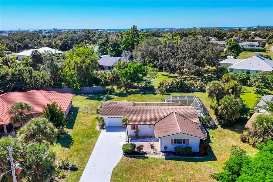 Welcome to Sorrento South, a deed-restricted community west of Tamiami Trail in Nokomis. This two-bedroom, two-and-a-half-bath, one-car garage pool home offers 1,545 square feet of interior living space on a 15,500-square-foot oversized and fenced lot. Offered as-is, this residence presents a substantial opportunity to transform and personalize the interior and exterior to reflect your vision of a dream home. An open floor plan includes a spacious great room that flows into a screened lanai with a heated pool under a soaring enclosure. The kitchen features stainless steel appliances, a breakfast bar, and a seamless connection to the living and dining areas. Wide views of the expansive backyard from the covered and screened lanai enhance the outdoor living experience. Residents enjoy low annual homeowners association dues of $300 and access to community amenities, including the nearby Bay...