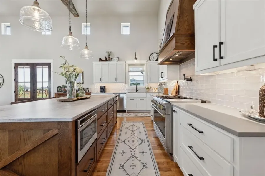 Experience the JAW-DROPPING CATHEDRAL CEILING within this modern farmhouse built by JB REI! This home is LUXURY at its finest. Crafted with love and attention to detail, this stunning 4 BR, 4 Bath, 3 Car Garage is a masterpiece on 1 Acre of land! The gourmet kitchen dazzles with its spacious island, top of the line appliances and deep-pantry for additional storage. Unwind in the lavish primary suite with exquisite finishes, custom cabinetry, garden tub, and EXPANSIVE walk-in-shower. This home displays detailed design in every room. Floor to ceiling stone fireplace, wood beams, hardwood flooring, custom cabinetry and tile work throughout make this gem sparkle. Entertain guests outdoors in your deluxe kitchen and living room and watch the stars come alive at night! Located in the esteemed NORTHWEST ISD, just a hop away from shopping, dining, and entertainment. Welcome home to your Texas dream!