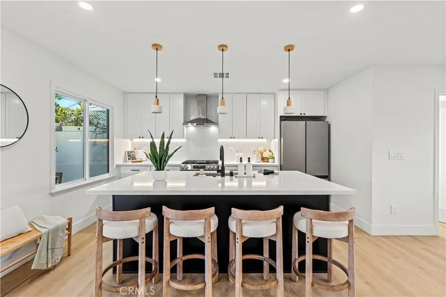 Welcome to 16951 Knapp Street, a newly remodeled pool home in the highly desired neighborhood of Walnut Cove in Northridge. From the moment you arrive on the cul-de sac, the charming ranch style home gives you that warm and cozy feeling when you think of home. As you enter, you are immediately greeted by the expansive great room that overlooks the serene backyard with sparkling pool. The luxurious kitchen is the perfect anchor for hosting - the large island sits 4 while you prepare your favorite meals. The dining nook is complete with a bar and wine fridge and offers the perfect space to expand your dining hosting when needed. Walk-in pantry is an added bonus you won't find elsewhere - the perfect place to brew your morning coffee as you overlook the lush front yard. Each bedroom is special in it's own way, from the perfect guest room with access to the backyard or the private primary su...