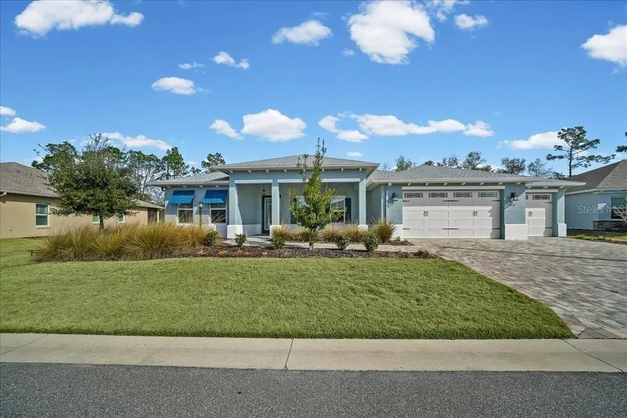 This beautiful 2022 Brighton Model has a stunning view of the 7th fairway and tee box of the Links Golf Course Two Spacious bedrooms, two bathrooms. Primary bathroom suite has dual vanities, walk-in shower, closet toilet. Amazing panoramic views of golf course from open kitchen, family room and dining room combination. Home also boosts a large den/office/living room. Kitchen has granite counter tops, large island and impressive 5 burner gas stove. Tile flooring, high ceilings through out makes home feel open and airy. True 3 car garage with plenty of extra storage space. Brick paver drive way and back patio, relaxing screened in lanai. This move-in-ready residence combines modern finishes, quality construction, and a prime Ocala location, delivering comfort, sophistication, and low-maintenance living in a sought-after community. Residents have access to the resort-style community at On Top of the World, featuring golf cart-friendly streets, on-site restaurants, cafes, and shops. With vibrant social hubs, fitness centers, and wellness programs, a truly amazing place to live. One or more of the pictures used have been virtually staged.