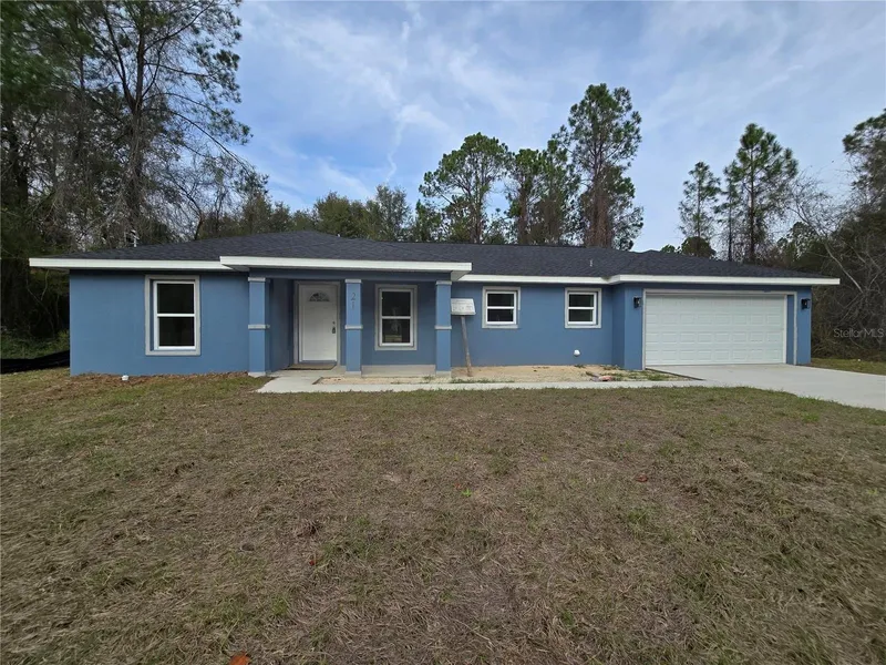 Want to be secluded in peaceful privacy, but still be close to everything? This one is for you! This gorgeous 3 bedroom 2 bathroom is almost complete and ready for move in! Featuring a split plan, high ceilings and large living room/ dining room combo and big open lanai that already has electric! When you step inside, take note at the floor, there is NO CARPET! Luxury vinyl flooring covers the entire home, even the rooms! to the left, the kitchen has amazing storage and features stone counters and whisper quiet cabinets and drawers. Pantry is at the end of the kitchen and the laundry room & garage is accessible off the kitchen via a handy pocket door. Now to the main feature, the Primary bedroom! Great sized, with a transom window to let the beautiful sunlight in. A large bedroom set can easily fit. Split closets so you can keep your items the way you like! The bathroom has dual sinks and the stone counters in the bathroom and window ledges match the counters in the kitchen! Oversized walk in shower with a small step down, and a beautiful river rock floor and full tile walls for easy clean and maintenance. There's also a linen closet for added storage. On the right side of the home, the 2 bedrooms share the bathroom and are equally great sized, with big windows to let the light in and the same matching stone counters. Fans already provided, so no modifications are needed! With the spring and summer season coming soon, you can enjoy your time inside the home or on the back lanai and take in the wooded view. The .24 ac property in not in an HOA so you are free to do what you wish with your property! On well and septic, so no utility bills! As long as you have electric, you have your utilities! Located 10 minutes away from famous Lake Weir where motorized boats, jet skis & kayaks re allowed. Less than 20 minutes to access the Ocklawaha river as well, you can take a trip up the river and view the abundant wildlife and take in the scenery. Those same 20 minutes can take you to numerous grocery stores like publix, wal-mart, aldi & save a lot. There's also 3 auto parts stores, medical, dental offices and other shoppes. Less than 1 month until this one is ready for move in, perfect choice for First-time homebuyers, Downsizers, Snowbirds, Veterans, and the very popular USDA eligible area! add this one to your list to see today!