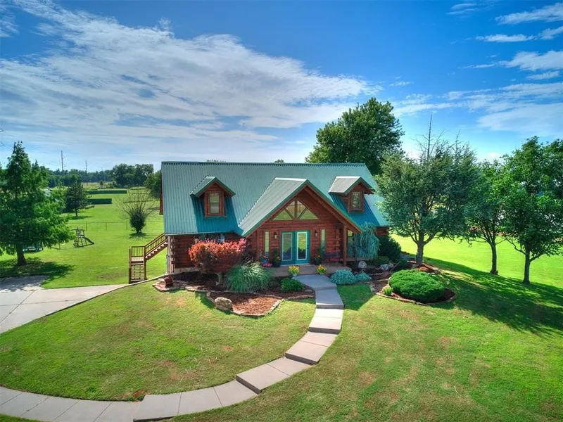 A Hidden Log Cabin Retreat right in Oklahoma City! Sitting on 2.4 fully fenced acres lies a home that feels like a world away—yet you're just minutes from top-rated schools, shopping, and major highways. This authentic log cabin is the kind of place you daydream about: rustic charm, modern comforts, and room to roam… right in the middle of town. As you turn down the drive, the handcrafted log exterior instantly slows your pace—welcoming you home to a place where sunsets are best watched from the deep back porch, and every day feels like a getaway. Step inside, and you're greeted by soaring ceilings and a loft that peeks out over the open living space below—perfect for cozy mornings and laughter-filled evenings. The heart of the home has newly updated stainless steel appliances and warm wood tones that echo the natural surroundings. The main level hosts the primary suite with its own priv...