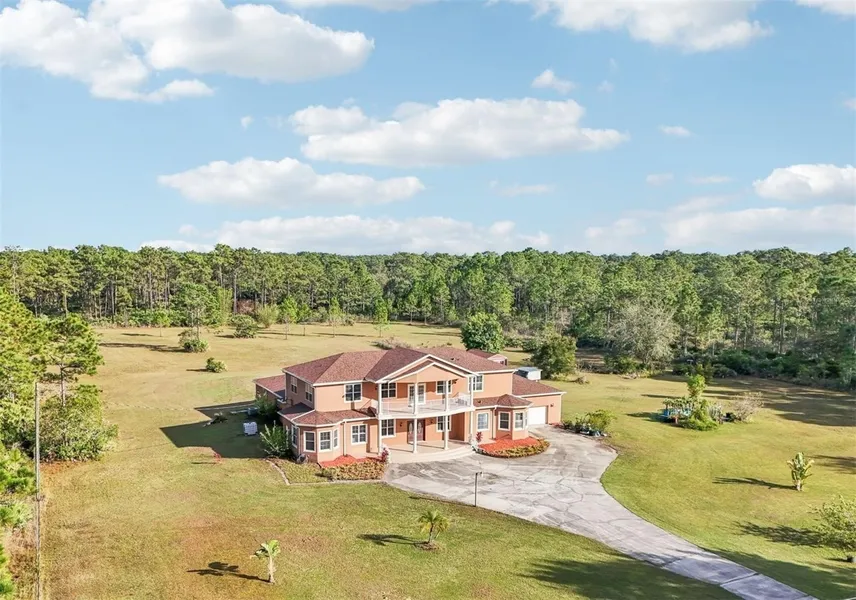 One or more photo(s) has been virtually staged. Dreams do come true! Welcome to your private slice of paradise in Wedgefield! This impressive custom-built estate offers over 5,000 square feet of living space with 6 bedrooms and 6 bathrooms, beautifully set on 4.77 acres and zoned A-2, so you can bring your horses, goats, chickens and more. Built in 2004 and well-maintained, this property blends peaceful country living with modern convenience and community amenities, including an 18-hole golf course, playgrounds, sports courts and nearby Hal Scott Preserve for hiking, biking and nature lovers. A 5-foot wrought iron fence spans the 360-foot front yard with a 20-foot wrought iron electric gate and pedestrian gates on either side, while the rest of the property is enclosed with 5-foot wire fencing- ideal for animals and added privacy. The enormous front and back yards are perfect for play, gardening, entertaining and enjoying the quiet setting, and the 288 sq. ft. Tuff Shed provides excellent additional storage. Step up to the Shark Coating front porch and through the double-door entry into a grand foyer that sets the tone for the rest of the home. Gorgeous inlaid porcelain tile flows throughout the first-floor living areas, and arched vaulted ceilings add volume and elegance. To one side of the foyer is a welcoming sitting room, and to the other, a formal dining area ready for large gatherings. The spacious, open kitchen anchors the main level with granite countertops, a granite breakfast bar, recessed lighting, abundant cabinetry and a huge walk-in pantry. The open concept layout connects all the spaces, giving you endless options for arranging living, dining and entertaining spaces to suit your lifestyle. On one side of the main floor you will find a guest bedroom with its own private bathroom featuring a Jacuzzi tub with shower - great for visiting guests or multi-generational living. The opposite side of the home hosts two individual office spaces, each with its own exterior entrance and one with a half bath, creating an ideal setup for remote work, home-based business, studio or hobby spaces. The main floor primary suite is a true retreat, complete with a tranquil sitting area and separate dual walk-in closets. The expansive primary bath offers a glass-enclosed shower, luxurious Jacuzzi garden tub and dual vanities, giving you a spa-like experience at home. French doors from the main living area open out to an approximately 1,100 sq. ft. screened lanai with porcelain tile flooring and a peaceful forest view. This impressive outdoor living area includes counter space with cabinets, a sink and a convenient half bath - perfect for hosting parties, enjoying quiet mornings with coffee, or relaxing after a long day without ever leaving your property. Up the grand curved staircase, a loft area opens to a balcony overlooking the front yard, giving you yet another beautiful space to relax or gather. Four additional bedrooms extend off the loft, two on each side, and each pair of bedrooms is served by a bathroom with a Jacuzzi tub and shower. One of the upstairs bedrooms features its own private sunroom, adding even more flexible living space for a reading nook, playroom, workout area or creative studio. This home is truly impressive - offering space, serenity and versatility inside and out! Come experience the peaceful setting and spectacular location for yourself. Call today to schedule your private showing an ASK US ABOUT THE ASSUMABLE VA LOAN or LENDER PROVIDED RATE BUY-DOWN CREDIT!
