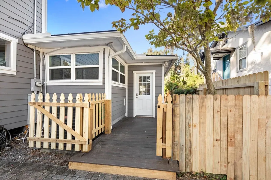 This fantastic property is in the heart of South Downtown (SODO) Orlando, just minutes from downtown, Kelly's Ice Cream, and Boone High School. The back house is a cozy single-story 2-bedroom, 1-bathroom unit with just over 1,100 sqft of living space. With two large bedrooms (one with new carpet/ the other with sleek dark wood laminate flooring) and an open-concept living space off the kitchen, you have the perfect cozy retreat. The bathroom has also been renovated with stunning white subway tile in the shower/tub and decorative tile flooring, as well as a charming vanity sink. The back unit also features a fenced-in backyard, offering a private outdoor space for you to enjoy year-round. This unit is offered at $2,100 per month, with water, electricity, and pest control included for ease. Kitchen appliances include a stainless steel refrigerator, cooktop, and oven. You also have a stackable in-unit washer and dryer, as well as a brand-new hot water heater. Conveniently located in SODO, you're just a short walk to local favorites like Kelly’s Ice Cream and only minutes from the vibrancy of downtown Orlando. This property is a rare find in a sought-after neighborhood, offering both comfort and convenience. Don’t miss the opportunity to live in one of Orlando’s most desirable areas – schedule your showing today! The owners have completely renovated the house. Brand new siding, insulation, interior and exterior paint, less than 2-year-old roof, completely replumbed and updated electrical.