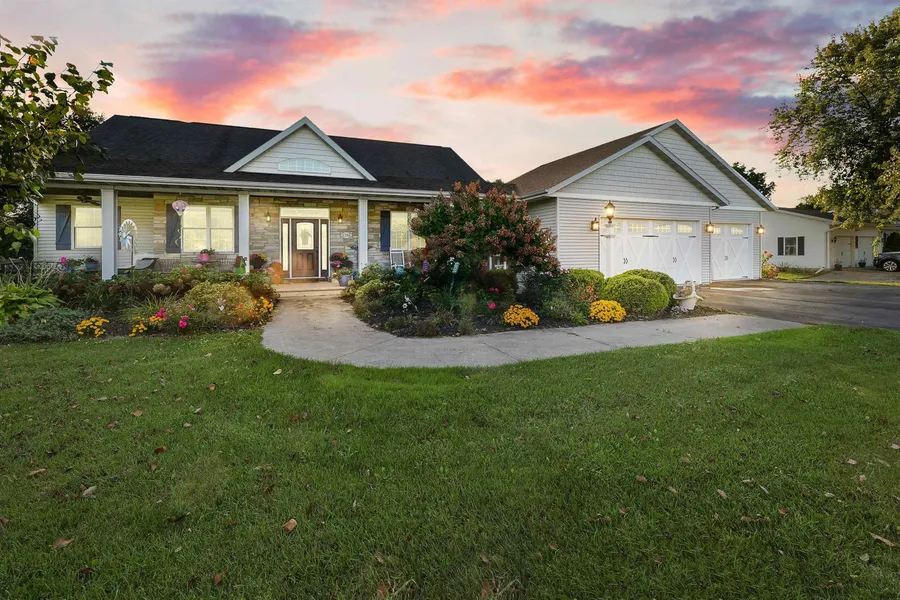 Welcome home to this beautifully crafted 3 BR 2.5 BA ranch where no detail was spared. A bright open floor plan featuring custom cabinets and built-ins throughout. The kitchen boasts granite countertops, island with breakfast bar, tiled backsplash, walk in pantry, and generous dining area. A built-in desk adds function, while wet bars on both floors make entertaining a breeze. The spacious primary suite includes a tiled walk-in shower, dual sinks, and walk in closet. Enjoy evenings by the gas fireplace or relax on the patio overlooking the scenic 8 mile creek. A 3 car garage and first floor laundry for your convenience and a large inviting front porch with gorgeous landscaping completes this property.