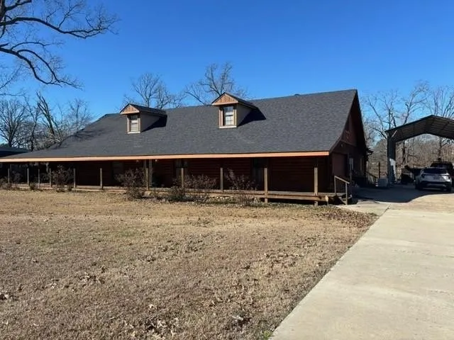 Stunning UPDATED LOG HOME in the desirable North Desoto school district. Beautiful 1.5 acres and a pond for swimming or fishing are all yours! The porch wraps around 3 sides of the house. New roof in 2024. Fully open living room kitchen floor plan. Excellent for entertaining. Wrap around breakfast bar and separate dining area. NEW oven, cook top, dishwasher and flooring. NEW quarts counter tops in kitchen and both bathrooms. Fabulous stone fireplace brings coziness and warmth to any gathering. Perfect bonus room off from the kitchen and living room for your office or craft room. Primary bedroom is remote with en-suite bathroom, large walking shower and closet. Complete 355 sq ft bonus room above the garage. RV parking. Large outdoor workshop and storage building with electricity. Also wired for above ground pool. Gym set is ready to play on.