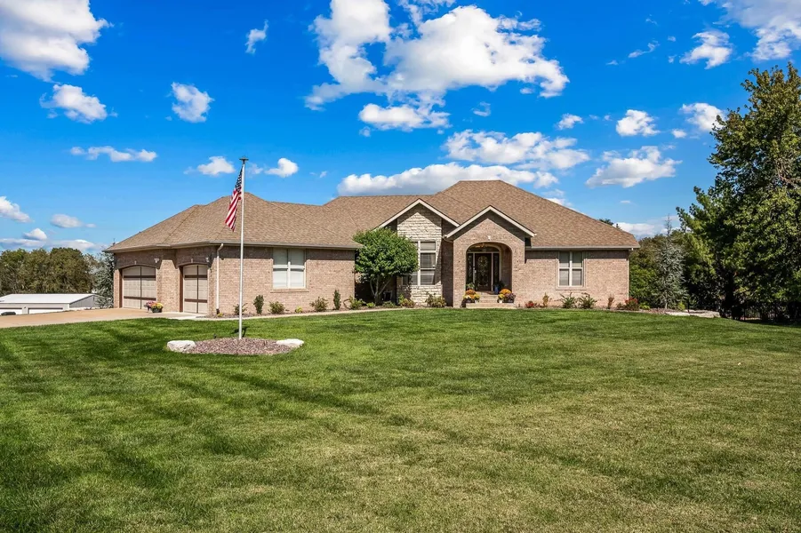 Discover Your Dream Home in Tranquil Ozark! Welcome to this immaculate home nestled on a serene 3.5 acres, just moments away from the charming town of Ozark! This all-brick walkout basement residence is a true gem, boasting a backyard oasis that dreams are made of. Picture yourself enjoying sunny afternoons by the beautiful heated pool, surrounded by lush landscaping and enclosed within a custom metal fence. As you step inside, you're greeted by an inviting tiled entryway that leads into spacious living areas filled with natural light from large windows and high ceilings. The main level features a roomy main suite designed for relaxation, complete with an elevated double vanity, jetted tub for unwinding after long days, custom tiled walk-in shower, and an expansive closet fit for any wardrobe. Off the entryway is a versatile office adorned with elegant French doors--ideal for remote work or study sessions. Gather your loved ones in the cozy living room featuring a stunning limestone fireplace hearth or whip up family meals in the generous kitchen/dining area equipped with a large bar/island perfect for casual dining. A convenient half bathroom and laundry room round out this functional main floor layout. Venture downstairs to discover even more space for family fun! A large living room awaits with its own wet bar/kitchenette--ideal for entertaining guests or hosting movie nights. You'll find two additional bedrooms providing ample space for family or guests along with another full bathroom and an expansive storage room/John Deere room to keep everything organized. This home showcases quality craftsmanship throughout--from crown molding to solid wood doors--and boasts newer carpeting in the basement along with all new appliances ensuring modern comfort. Don't miss out on your chance to make this fantastic property yours!