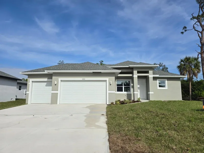 The primary suite is a true retreat, offering a spa-inspired bathroom with a freestanding tub, dual sinks, and marble-style tile finishes. Enjoy Florida living with a covered lanai, a beautifully designed paver driveway, and the convenience of a spacious 3-CAR GARAGE offering approximately 721 sq. ft., perfect for vehicles, storage, or a home workshop.