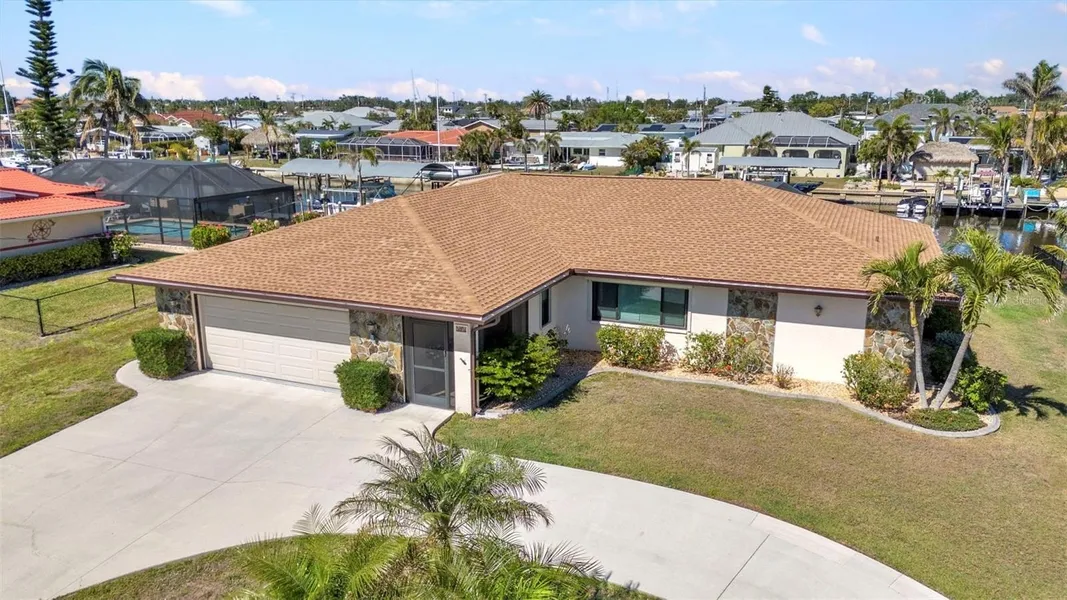 DIRECT SAILBOAT ACCESS with a NEW 2023 SEAWALL by Honc Marine and freshened LANDSCAPE! This 3 Bedroom, 2 Bathroom, 2 Car Garage POOL HOME sits on an oversized lot with 100 FEET OF WATERFRONTAGE just MINUTES to Charlotte Harbor and the Gulf of Mexico. NO HOA FEES & FLOOD INSURANCE IS TRANSFERABLE! CLICK ON VIRTUAL TOUR LINK 1 FOR THE VIDEO AND LINK 2 FOR THE 3D TOUR. This solid, well-maintained home features a bright open floor plan, bamboo & tile flooring throughout, vaulted ceilings, crown molding, recessed & pendant lighting, and MUCH MORE! The inviting living and dining areas flow seamlessly into the EAT-IN kitchen, which showcases cherry cabinets, stainless steel appliances including a double oven, granite countertops, and a convenient service window to the lanai. The spacious master suite offers lanai access, a walk-in closet, and a private en-suite bathroom with a glass-top dual si...