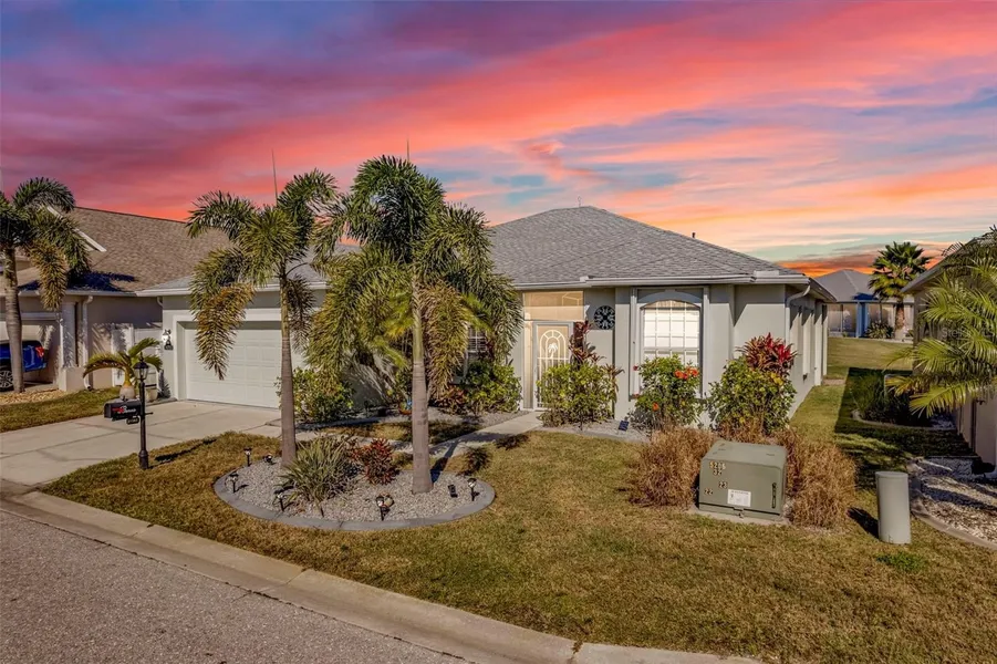 AWESOME UPDATED BRISTOL II home with massive enclosed and UNDER AIR LANAI and serene view of water and 15th hole in the gated/golf course active resort of highly desirable Kings Gate, a 55+ community (evacuation zone D - have not been under any evacuation order, more than 20 feet above sea level - storm surge has not been an issue, not in a flood zone - no flood insurance required). Roof 2023, AC 2021, Tankless HWH 2020, In last 3 years - new LVP flooring throughout, new granite counters in kitchen and quartz in bathrooms, epoxy garage floor and lanai floor, new door handles, hinges, and kitchen hardware plus some new lighting along with new curbing and landscaping. This home that feels LIKE NEW is being SOLD FURNISHED (very few exceptions) and features 3 King Beds including one that is a sleep number. Accordion shutters all throughout and a whole house portable generator - so you can be...