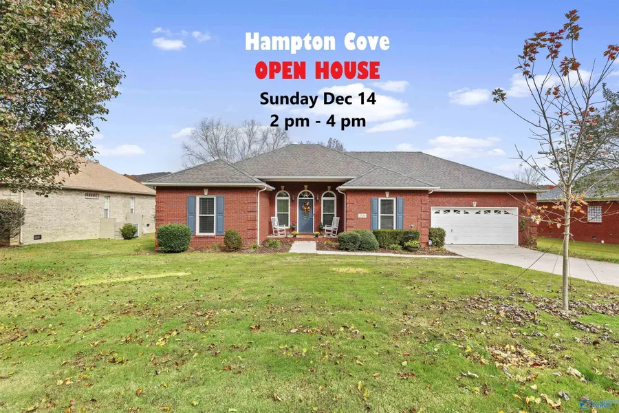Located in the popular Hampton Cove development, this updated four-bedroom, three-bath home offers spacious 11-foot ceiling, bamboo flooring, granite countertops & tile backsplash. Enjoy the cozy propane fireplace and covered deck perfect for relaxing outdoors. Recent upgrades include new windows in 2023, an HVAC system in 2022, and kitchen appliances from 2020. The low-maintenance exterior features full brick with vinyl eaves. Membership to the Hampton House Community Center transfers to the new owner saving you a $3,500 initiation fee. Additional amenities include a nearby fishing lake and walking path, making this home and neighborhood a fantastic opportunity you won’t want to miss.