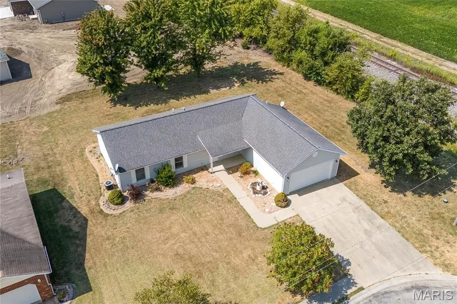 Looking for a nice ranch home to start out in or maybe even downsize into for your next chapter? Well look no further! This ranch home has virtually no entrance steps out of all exterior doors. Including a ramp to enter the house from the garage. Enhancing this house even more as a great place for more people to live, possibly grow old in, or be that spot where more visitors can feel like they can easily stop by. The common area of the kitchen dining and living room has an open floorplan with an 11 ft vaulted ceiling making it feel even more spacious. Kitchen has a breakfast bar and a bonus pantry space just before the laundry area. The main two bedrooms are similarly sized and share the bigger of the two full bathrooms. The third bedroom is more of an office-sized room at roughly 8x8 with a 4x6 closet for plenty of extra storage. Backyard has 14x10 patio and the front porch is 14x6. Railroad tracks are next door, but the tracks have been non routed since 2015ish.