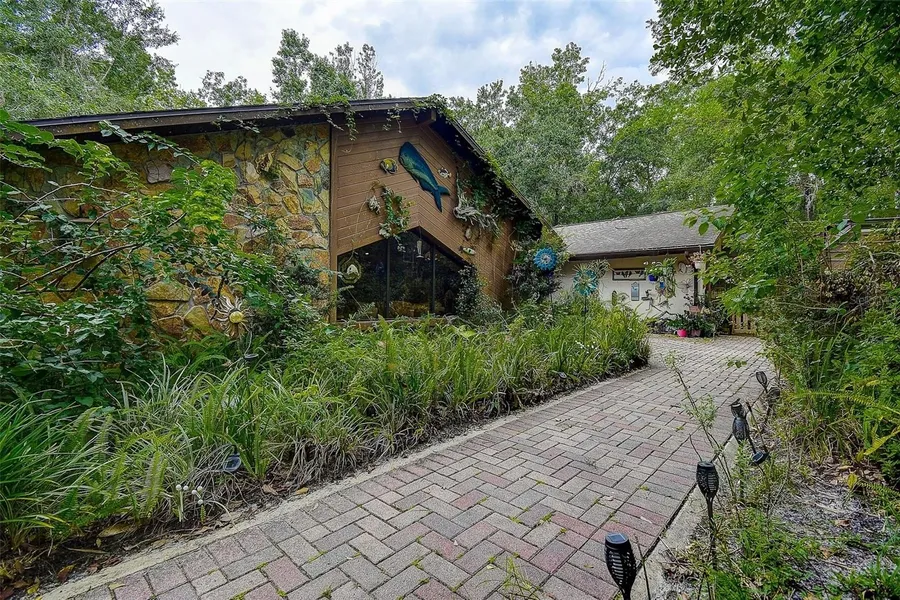 Escape to Your Brooksville Retreat. This Country Home is nestled on a secluded 3.1 acres of Park-Like Property that will give you the PRIVACY you dream of. ZONED AGRICULTURAL-RESIDENTIAL and NO HOA, NO DEED RESTRICTIONS, so bring your RV, camper, boat, ATVs, horses, pets... bring it all! NO FLOOD INSURANCE REQUIRED. Tons of space for gardening and outdoor activities. Flexible use of land for livestock, recreation, or expansion. Whether you’re looking for a hobby farm, a sustainable homestead, or just a peaceful retreat with modern amenities, this one-of-a-kind property has it all. Step inside and discover a home that radiates warmth and comfort. With its open floor plan, high ceilings (no popcorn in main rooms), large glass windows and glass French doors, the design blends the indoors with the outdoors and feels incredibly private as YOU DON’T SEE ANY NEIGHBORS! Prepare your favorite family recipes in the country kitchen, the heart of this home. Complete with granite countertops, stainless steel appliances, wood cabinets with pull out drawers and wine rack, convenient pantry and a CENTER ISLAND that opens to the family room. Vaulted, beamed ceilings and a stunning floor-to-ceiling wood-burning fireplace create a warm and inviting atmosphere for entertaining. The dining room allows plenty of space for a large dining table. The SPLIT BEDROOM FLOORPLAN provides privacy, there’s space to spread out and truly feel at home. A standout feature of the home is the PRIVATE IN-LAW SUITE designed with independence in mind. It offers its own PRIVATE ENTRANCE. The suite includes an ensuite bathroom with shower, and a closet can be added easily. This FLEX SPACE is ideal for MULTI-GENERATIONAL LIVING, extended family, your out-of-town-guests, hobby room or a private HOME OFFICE! Step outside to enjoy over 1,000 SQFT OF PORCH & BRICK PATIO - the perfect space for year-round entertaining family and friends or relaxing with views of nature all around. You'll fall in love with the inviting front porch — it's a perfect setting for a porch swing and rocking chairs to enjoy time with your family, cool breezes, a little sweet tea, and nature views! Outside amenities include large WOOD SHED, well house, native Florida plants and Bamboo galore! Perfect setting to add a fire pit to the lifestyle. Enjoy your evenings grilling out on your wood deck. This property also features a DETACHED 2-CAR GARAGE—ideal for a potential guest suite, home office, gym, workshop, storage area for all your toys, or even your dream she-shed or man cave. The possibilities are endless! Additional highlights include: HVAC NEW 2021. Roof 2013. And for peace of mind during Florida’s stormy season, this home is equipped with a HOME GENERATOR, so you're never left in the dark. Located just minutes from Historic Downtown Brooksville, and from Suncoast Parkway and I-75, this home offers a prime location with easy access to Tampa International Airport, hospitals, restaurants, shopping, and entertainment. Here, you can have the best of both worlds... TRANQUILITY OF COUNTRY LIVING with all the convenience of nearby amenities! Schedule your showing soon, and make this home yours!