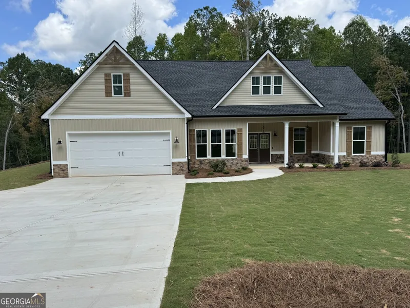 This stunning new construction home on 5 private acres is the perfect combination of modern comfort and rustic charm- Featuring a thoughtfully designed ranch floor plan with 3 bedrooms, 2 bathrooms, + a dedicated office-this property offers ample space for work, relaxation, and entertaining. Step inside to an open-concept layout centered around a true chef's kitchen, complete with quartz countertops, a large island and farm house sink- ideal for gatherings, stainless steel appliances (range, microwave, and dishwasher), white cabinetry, and a walk-in pantry with a stylish barn door. The kitchen flows seamlessly into the living area, highlighted by a custom craftsman-style electric fireplace with a slate surround and 10 ft ceilings throughout the main living areas. The dining space boasts a custom decorative tray ceiling, adding a unique touch to your mealtime experience. The split bedroom layout ensures privacy, with spacious secondary bedrooms each featuring walk-in closets and a shared full bath. The serene owner's suite offers a luxurious retreat with a massive walk-in closet, spa-like bath with his-and-hers vanities, soaking tub with tile surround, separate shower, and sliding barn door. Other highlights include:Covered back porch with wildlife views-perfect for morning coffee, LVP flooring in kitchen, dining, living room, and laundry area, Custom lighting throughout, 2-car garage with openers, Architectural shingle roof with ridge vent, All-electric home with vinyl siding and rock accents, Rocking chair front porch with barn-style exterior lighting, Pull-down attic stair access. Don't miss this opportunity to make this your homestead. TRACT 2 on Survey. Preferred lender incentives also available up to 1%. USDA Loan with 100% Financing Available