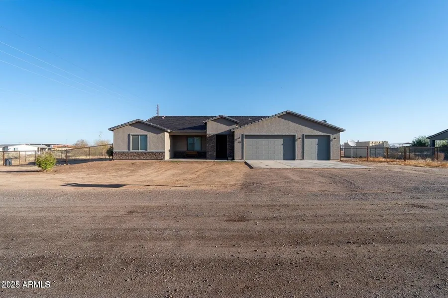 This stunning new home sits on nearly an acre of fully fenced land, including a fenced backyard with RV gates—perfect for horses, toys, and RVs—NO HOA! It features 4 bedrooms, 2 bathrooms, and an oversized garage for comfort and convenience. The stylish kitchen boasts 36'' upper cabinets, granite countertops, and ample storage. Bathrooms feature granite counters and travertine enclosures. Upgrades include automatic garage door openers, a water softener, and a durable tile roof. Enjoy breathtaking views from a separate barn offering a garage, bedroom, and restroom—ideal for storage, guests, or workspace. Don't miss this incredible property! SELLER IS OFFERING $10,000 TOWARDS BUYER,S CLOSING COSTS