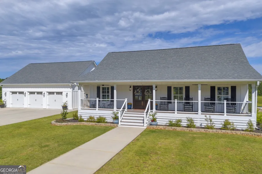 Stunning 26-Acre Farmhouse Retreat with Dual River Frontage Located in Carnesville, GA A dream retreat nestled in the heart of Franklin County, this exquisite modern farmhouse offers the perfect blend of luxury, comfort, and natural beauty on 26 acres of mostly open pastureland, ideal for equestrian or farming pursuits. With 600 feet of scenic Payne Creek frontage and 1,200 feet along the tranquil Middle Fork Broad River, this rare property is a haven for nature lovers, outdoor enthusiasts, or anyone seeking peace and privacy with the gentle sounds of running water. The home features a thoughtfully designed layout with 3 bedrooms, 3 full bathrooms, and a spacious loft area that can easily be used as a fourth bedroom, guest suite, or additional living space. Inside, you'll find a stunning eat-in kitchen with top-of-the-line appliances, custom cabinetry, and stone countertops, perfect for the avid chef or family gatherings. Each bathroom boasts upscale finishes and spa-inspired details, while a functional mudroom keeps the outdoors contained. Enjoy cozy, stylish living areas with spectacular views of the surrounding countryside. Step outside to your private oasis featuring a luxurious 16x32 gunite heated pool, a 7x7 hot tub, and a waterfall feature, ideal for entertaining or unwinding year-round. Additional highlights include a three-car garage with 350 sq. ft. heated and cooled storage space, and 741 sq. ft. of finished space above that can serve as a home gym, media room, office, or more. With breathtaking panoramic views of rolling pastures, lush riverbanks, and wide-open skies, this property is just minutes from charming downtown Carnesville yet offers the serenity of a secluded country estate. Don't miss the opportunity to own this extraordinary piece of Northeast Georgia paradise. Contact me today to schedule your private tour!